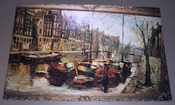 Korthals, voorstellend een A'damse gracht met 4 boten en grachtenpanden. Het