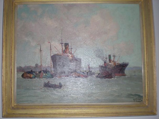 H. van Gessel, (G.J.Delfgaauw) Havengezicht, 60 x 45 cm olieverf