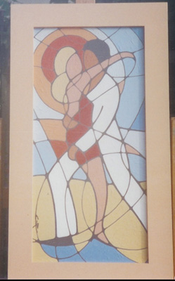 op glas in lood en 7 panelen op mdf [dik 9 mm] gelijkend op keramiek.