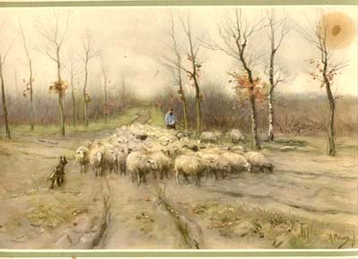 prent nageschilderde werken van Mauve. (“Landschap met schapen en herder” en